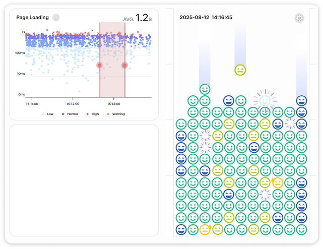 기업의 핵심 서비스 성능이 개별 고객에게 미치는 영향력은 결국 브랜드 이미지와 직결됩니다. 전 구간 세션리플레이와 Core Web Vitals 기준의 고객 체감 성능 만족도 측정을 통해 안정적인 서비스 성능을 유지하십시오.